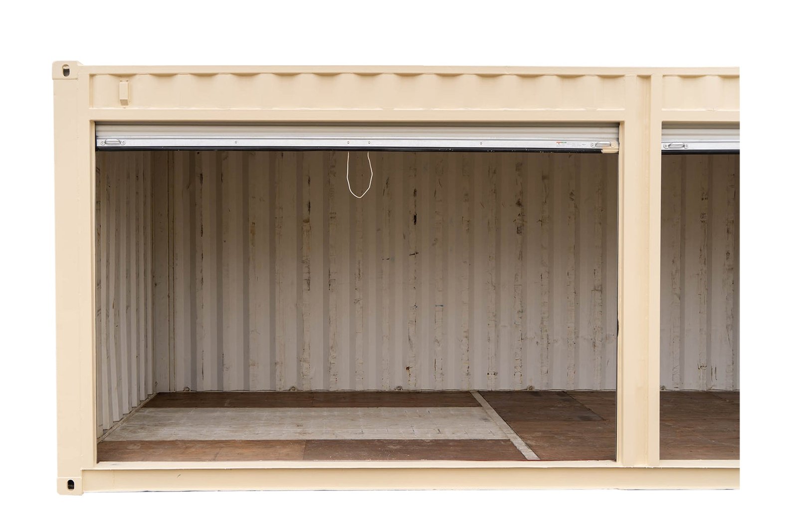 Roll-up doors are one of our most common modifications. These garage-style doors allow for quick and easy access on any side of your container, come in lengths of 3’6″, 4′, 6′, 8′, 10′ and 12′ wide (6′ and 8′ are the most common, thus installed in the quickest time frame), and are great when installed opposite the swing doors giving you access from both ends of the container.