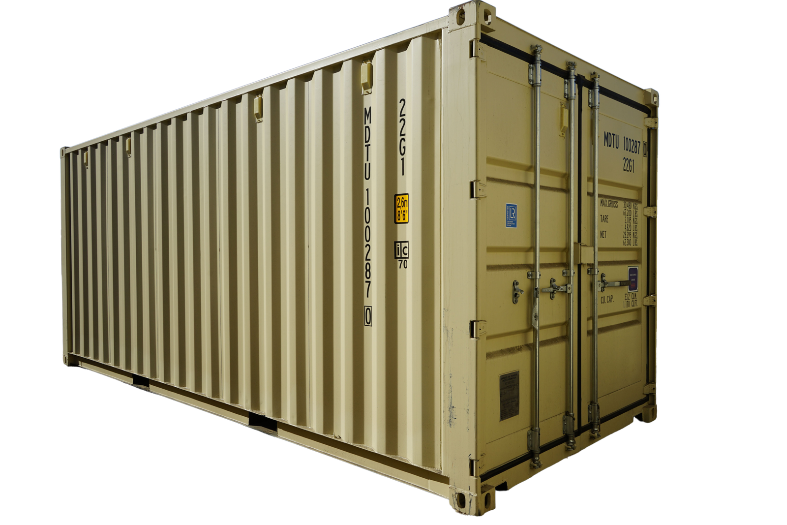 Your “One Trip” container will have minimal to no surface rust, dents, scratches, small or no decals and will be a factory-color tan or light gray. It will include a factory built-in lockbox and easy-to-open high handles on the cargo swing doors. Every unit comes with our 1-year warranty against structural defects.