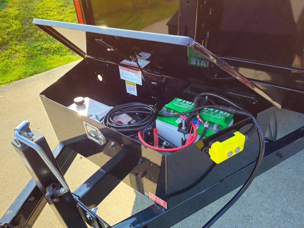 Heavy-Duty Hydraulic System: Dual 3″x30″ cylinders powered by a 12V DC pump deliver 3,200 PSI of lift pressure and 1,500 PSI lowering pressure—supported by an Interstate deep-cycle marine battery for consistent performance.
