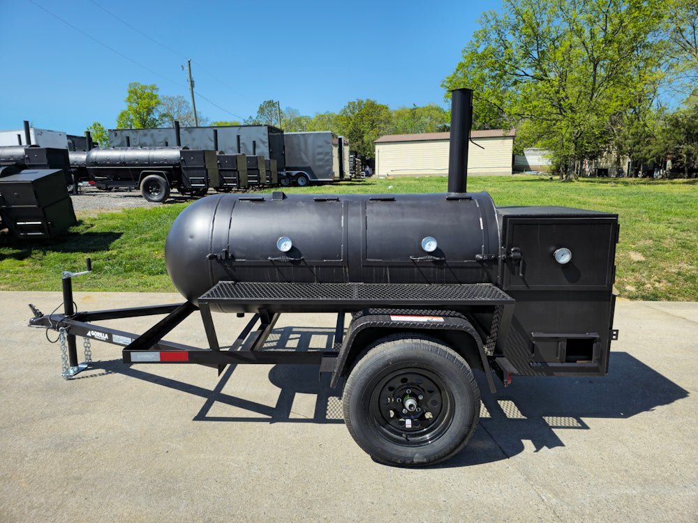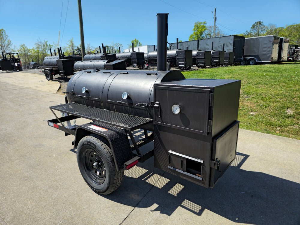 - Rugged 5’ x 8’ trailer base supports the full smoker assembly.