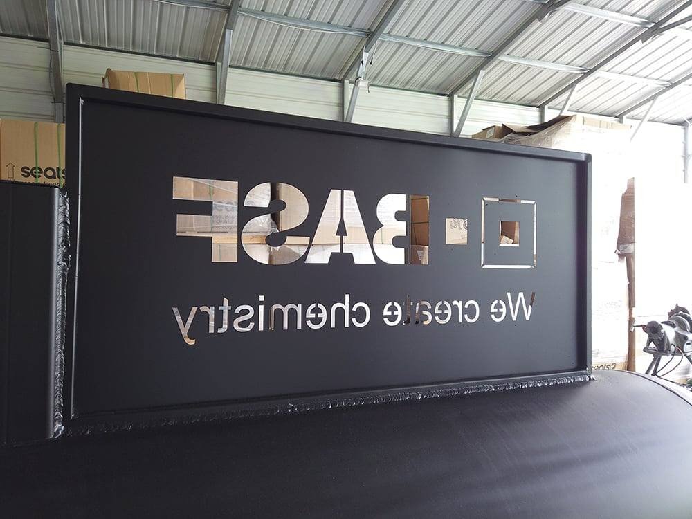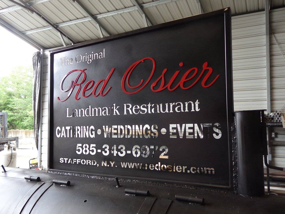 - Sign is made of laser cut steel